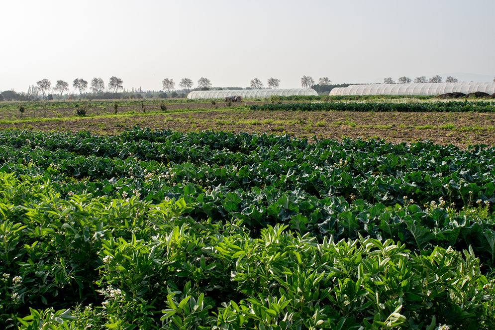 Après une carrière de militaire pour David et dans le soin pour Lara, ces deux amoureux du végétal ont décidé de reprendre la ferme des parents de David, le domaine Los Penedès. Ils ont rapidement converti en bio le domaine : 12 ha de vergers, 4 ha de maraîchage, 2 000 m² de tunnel sur lesquels s’opère une culture très diversifiée. Plus de 30 légumes différents sont cultivés au fil des saisons avec un système de rotation de cultures complémentaires afin d’enrichir le sol. Soucieux aussi de la biodiversité, ils choisissent des semences dites « population », bien adaptées à leur environnement.